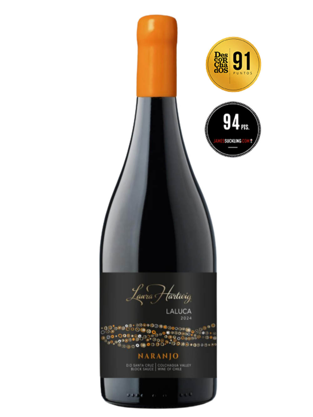 Laluca Naranjo. Es un vino versátil y elegante, con un color dorado y matices naranjas. Presenta aromas de damasco, piel de naranja, flores blancas, frutos secos y un toque de madera. Su sabor es suave y untuoso, con un final jugoso y notas frutales.